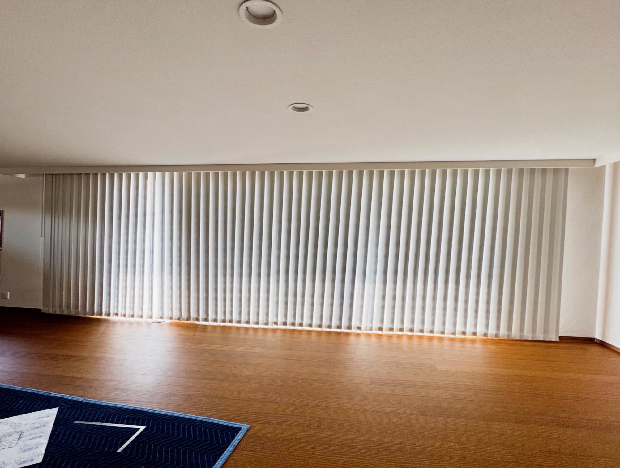 リネンホワイト色で ナチュラルな縦型ブラインド。