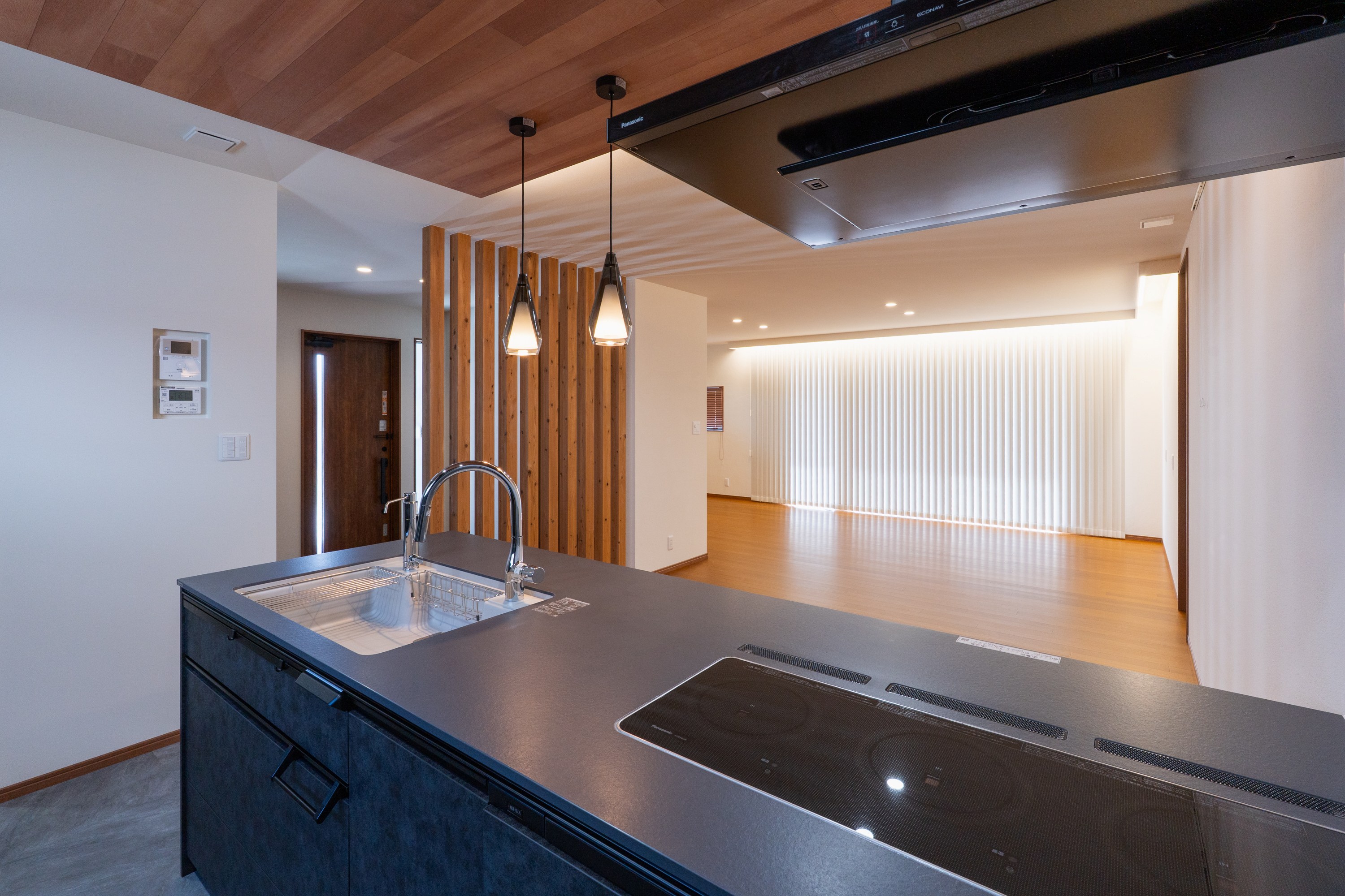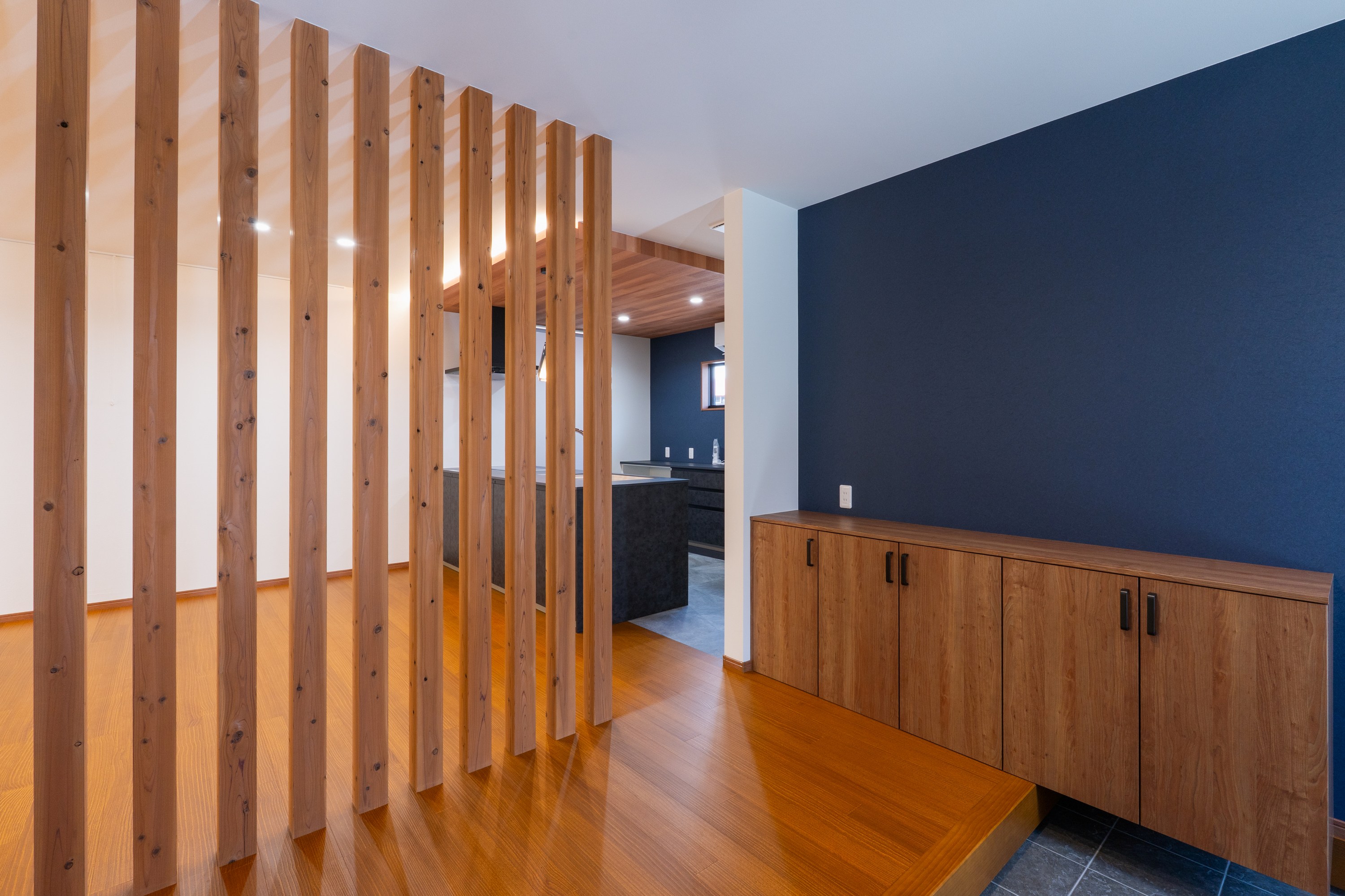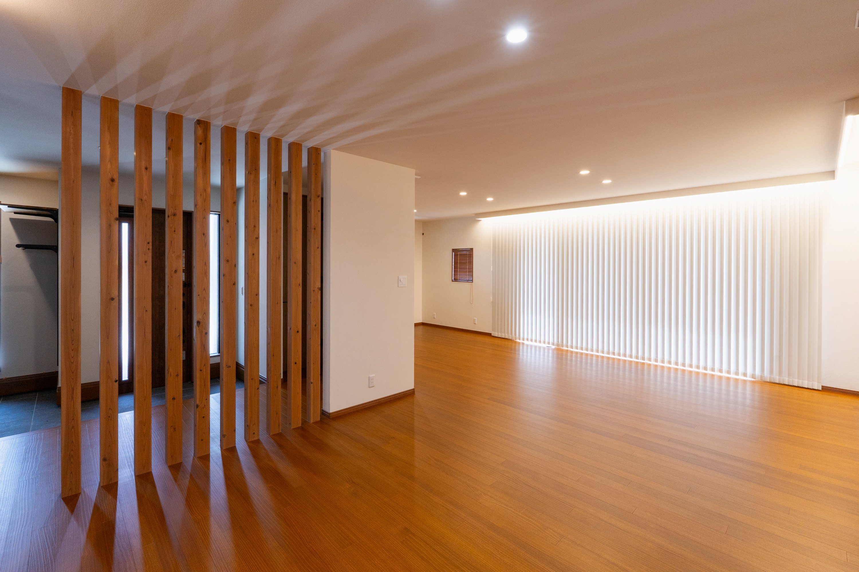 玄関からLDKへは、壁やドアではなく