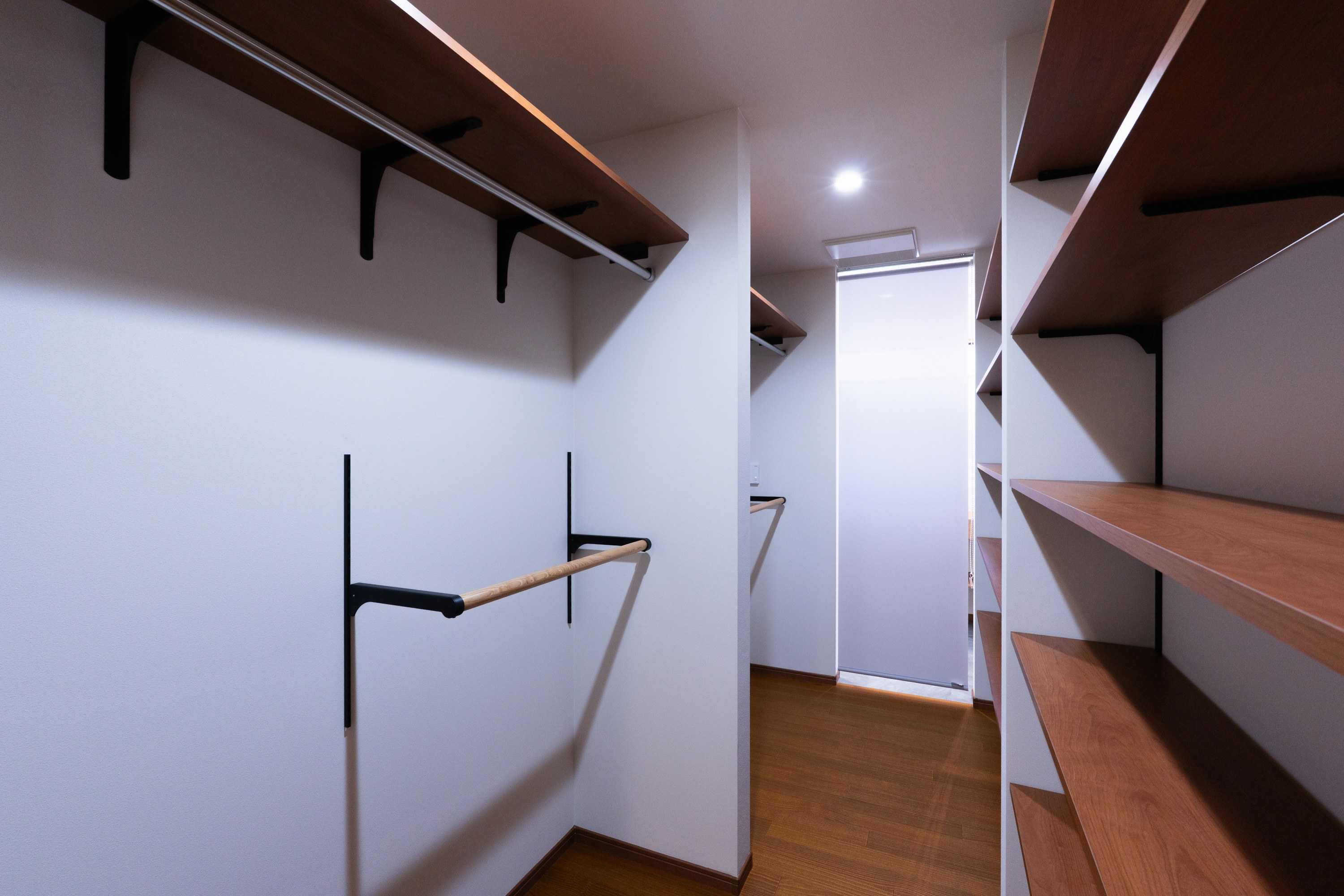 壁と同じ色にすることで、明るく広く感じられます。