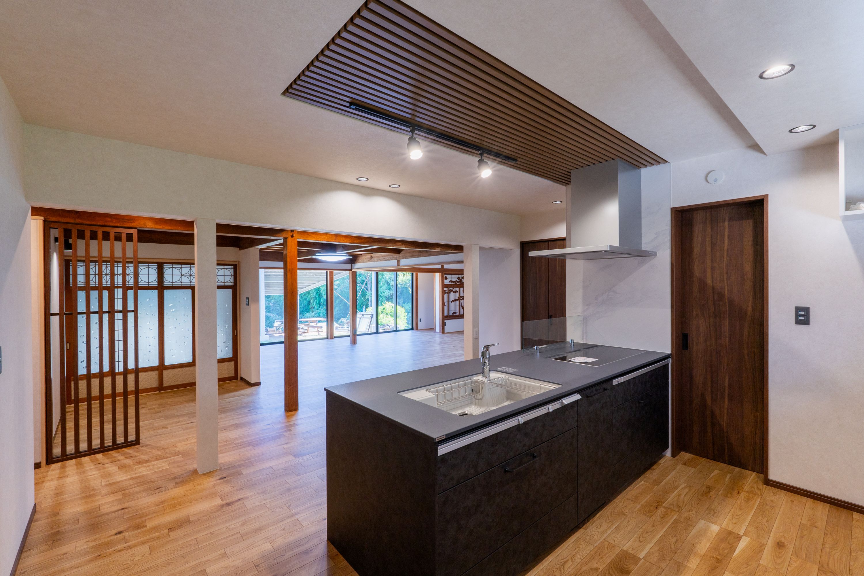 続き間だった和室と広縁もフローリングで一帯に。