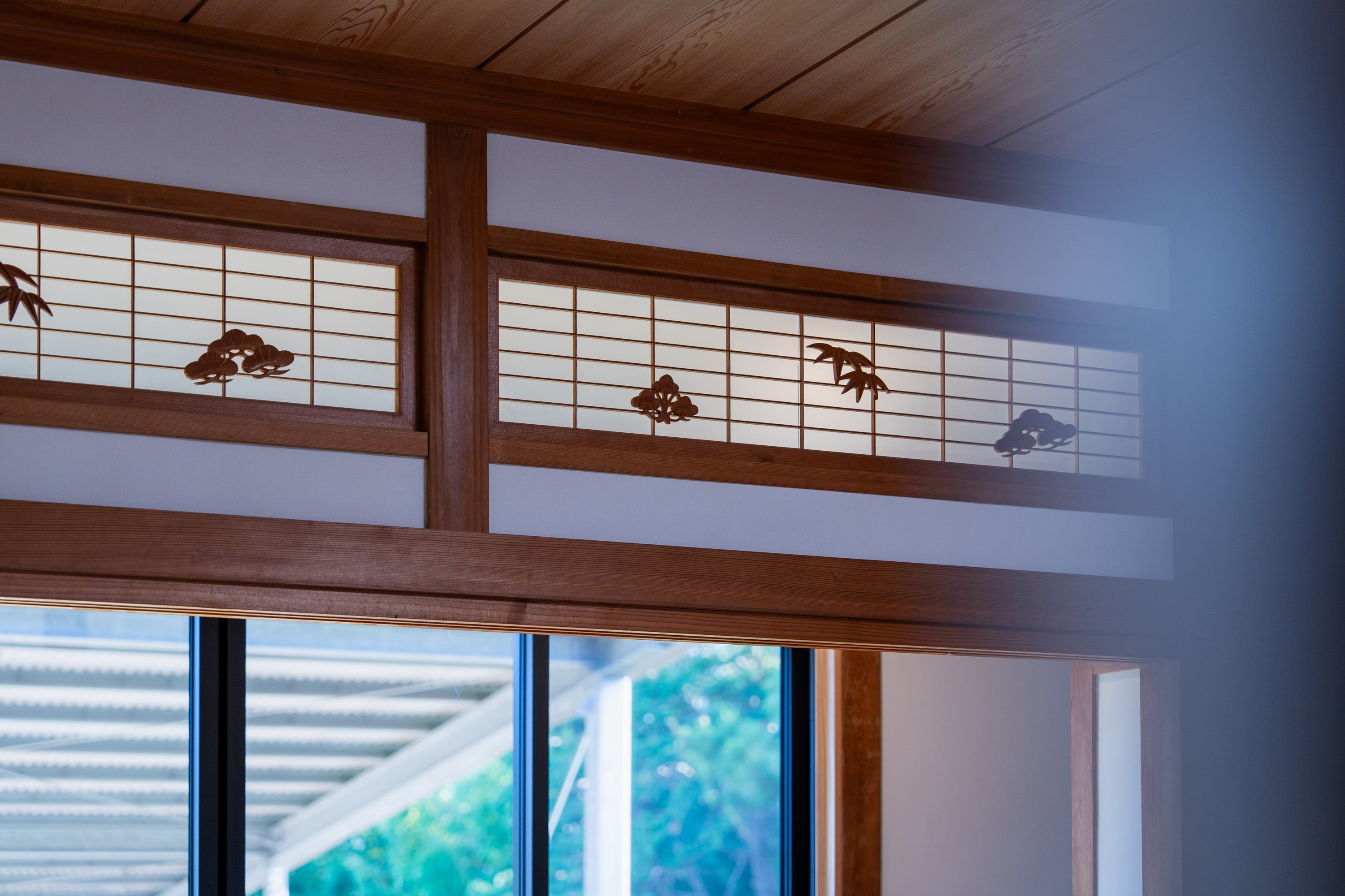 レトロなガラスと組子細工が施された建具は、